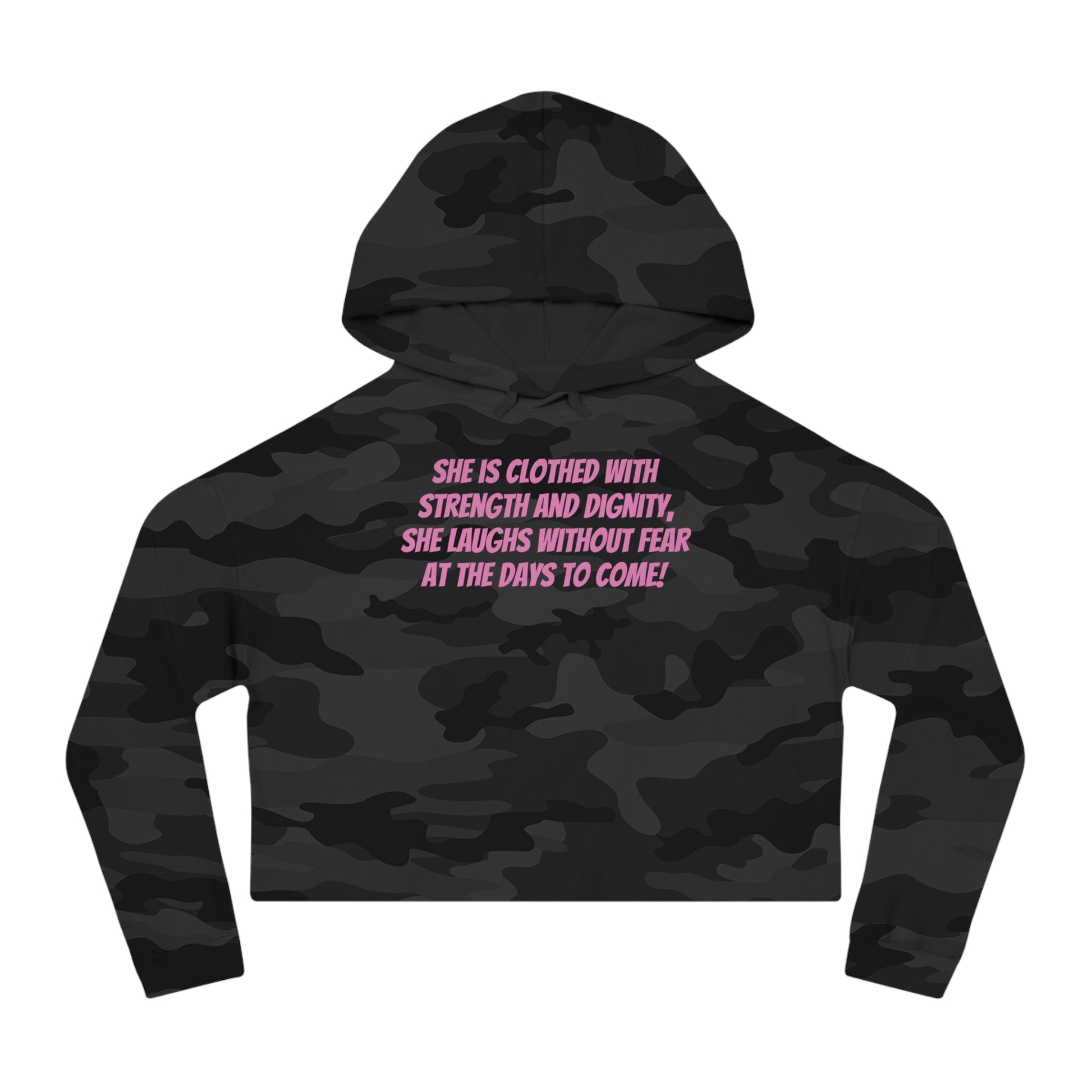 Proverbs 31:25 - She Laughs - Women’s Cropped Hooded Sweatshirt